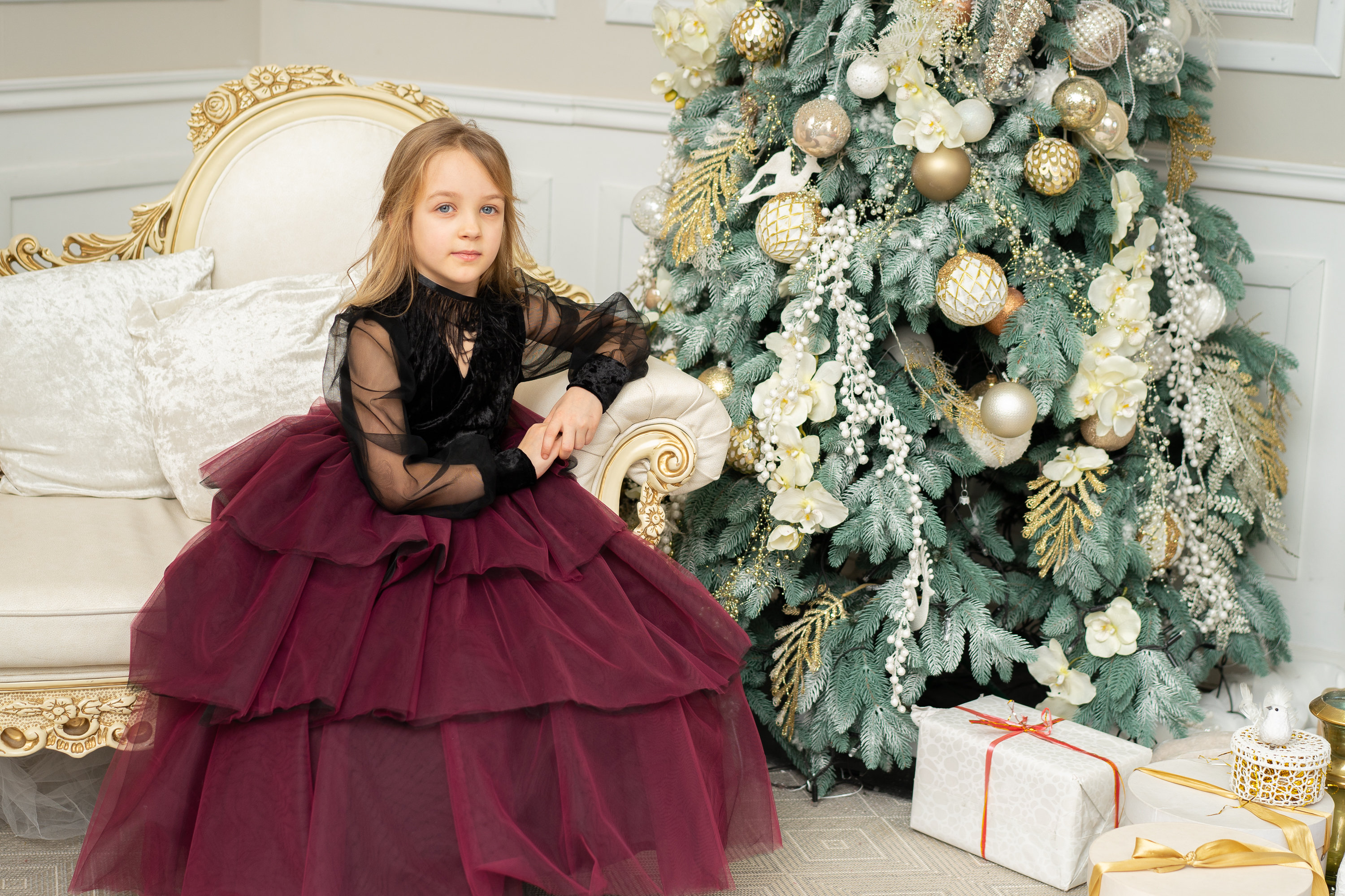 Burgundy Matching Mother Daughter Floor Length Dresses For Christmas P
